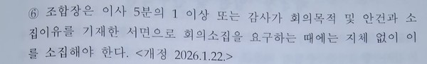 진도수협 내부 갈등이 임시 이사회 소집 요구로 공식화됐다. 일부 이사들이 조합장과 현 집행부를 상대로 주요 현안에 대한 논의를 요구하며 23일 긴급 임시 이사회 개최를 요청한 것으로 확인됐다. 복수의 관계자에 따르면 진도수협 일부 이사들은 최근 정관에 근거해 회의 목적과 안건을 명시한 서면을 제출하고 임시 이사회 소집을 요구했다. 오는 28일 임기 만료를 앞둔 현 이사진의 마지막 회의가 될 가능성도 제기되고 있다. 이번 임시 이사회 요구의 핵심 안건은 크게 세 가지로 전해진다. 첫째는 내부 게시판을 통해 제기된 업무 및 행정 관련 문제에 대한 공식 입장과 사실 확인이다. 일부 이사들은 “제기된 사안에 대해 명확한 설명이 필요하다”며 공개 논의를 요구하고 있는 것으로 알려졌다. 둘째는 외부 민원 및 고발과 관련된 대응 경위에 대한 설명 요구다. 이사들 사이에서는 조합 운영과 관련해 제기된 일부 사안에 대해 경과 보고가 필요하다는 의견이 나온 것으로 전해졌다. 다만 현재까지 수사기관의 공식 발표나 법적 판단이 확인된 사안은 없는 상태다. 셋째는 향후 이사 선출 절차와 선거관리위원회 구성 문제다. 일부 이사들은 선관위 구성 과정의 절차적 공정성 확보가 필요하다는 입장을 밝히고 있다. 이번 사안은 최근 개정된 정관 조항과도 맞물려 있다. 개정 정관 제6항은 ‘이사 5분의 1 이상 또는 감사가 회의 목적 및 안건, 소집 이유를 기재한 서면으로 회의 소집을 요구할 경우 조합장은 지체 없이 이를 소집해야 한다’고 규정하고 있다. 요건이 충족될 경우 임시 이사회 개최는 절차적으로 가능하다는 해석이 나온다. 일부에서는 감사와 조합장 간 입장 차이도 거론되고 있으나, 이에 대해서는 당사자들의 공식 입장이 확인되지 않은 상황이다. 진도수협 측은 “임시 이사회 소집 요구가 접수된 것은 사실”이라며 “정관과 절차에 따라 검토 후 대응할 예정”이라고 밝혔다. 임기 만료를 앞둔 현 이사진이 어떤 결론을 내릴지, 그리고 이번 임시 이사회가 조합 운영에 어떤 영향을 미칠지 지역 수산업계의 관심이 쏠리고 있다.
