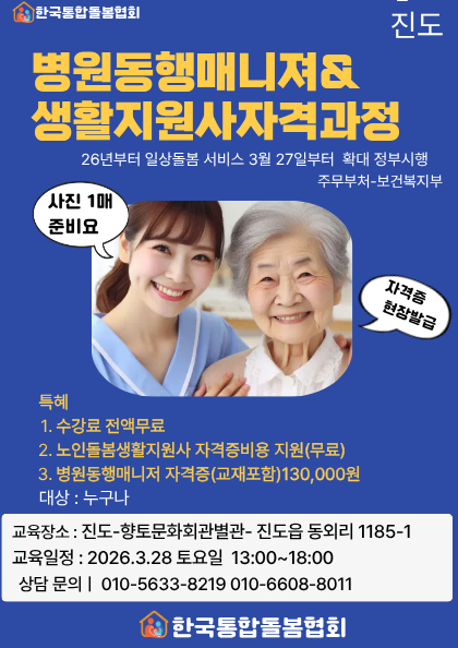 병원동행매니져&생활지원사 자격증과정 수강료무료