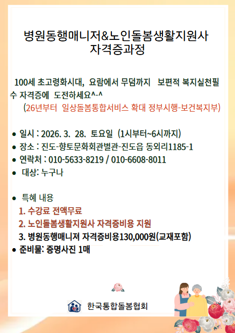병원동행매니져&생활지원사 자격증과정 수강료무료
