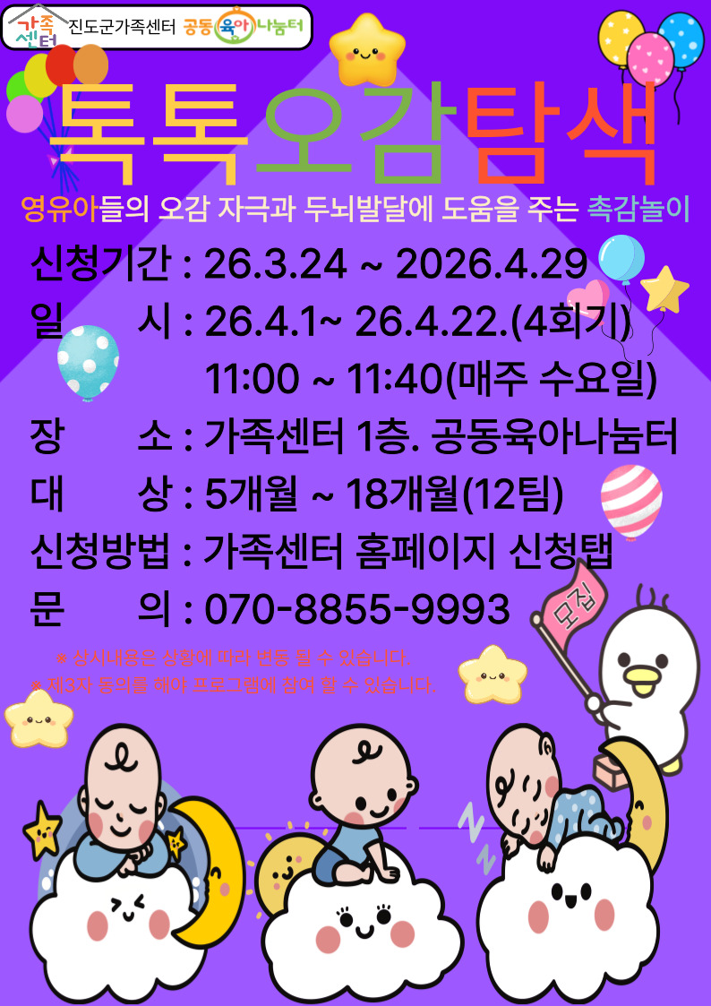 톡톡오감탐색(영유아들의 오감을 자극하고 두뇌발달과 부모와 애착형성에 도움이 되는 촉감놀이)