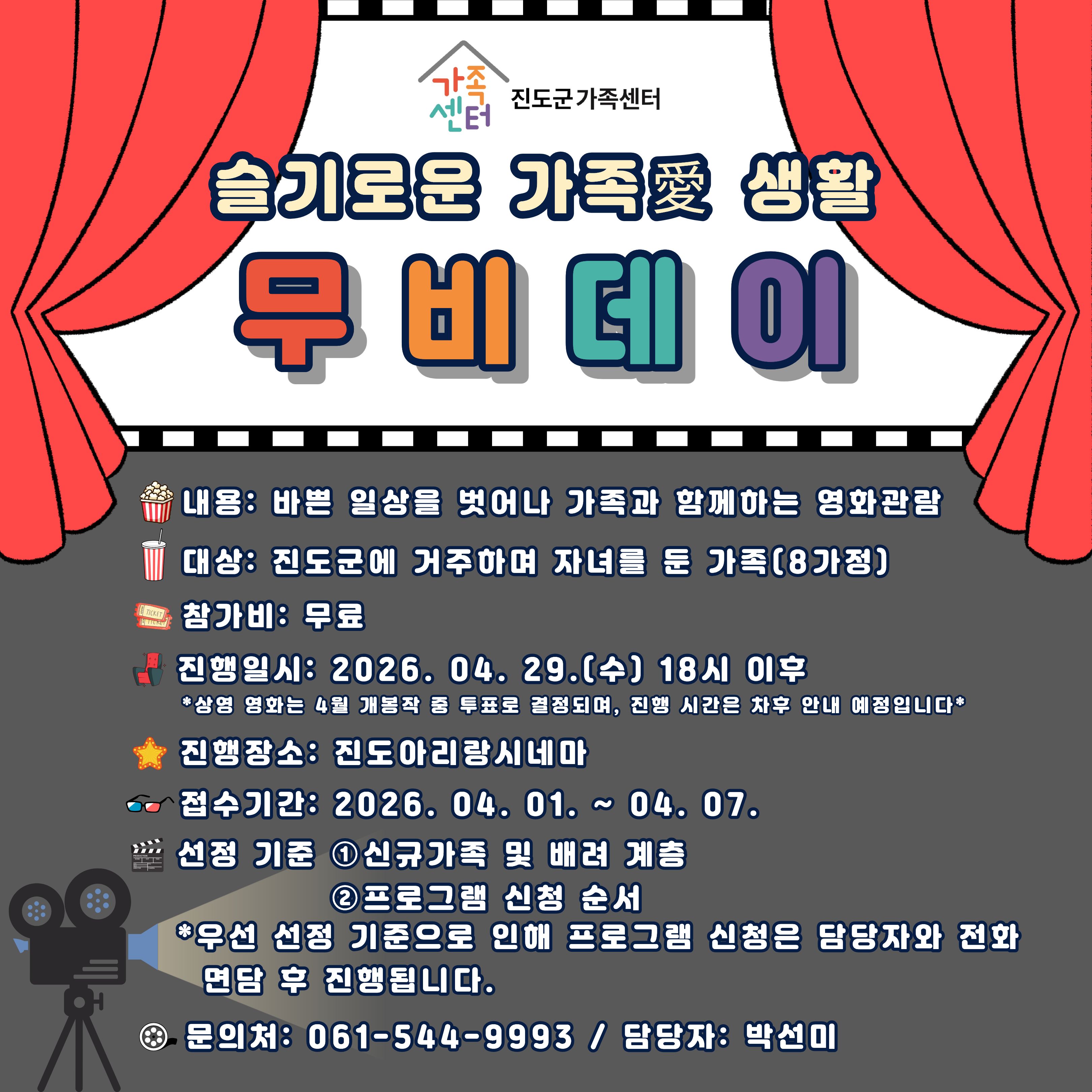 *신청방법: 진도군가족센터 가족사업 담당자와 전화 면담 후 신청 절차 진행