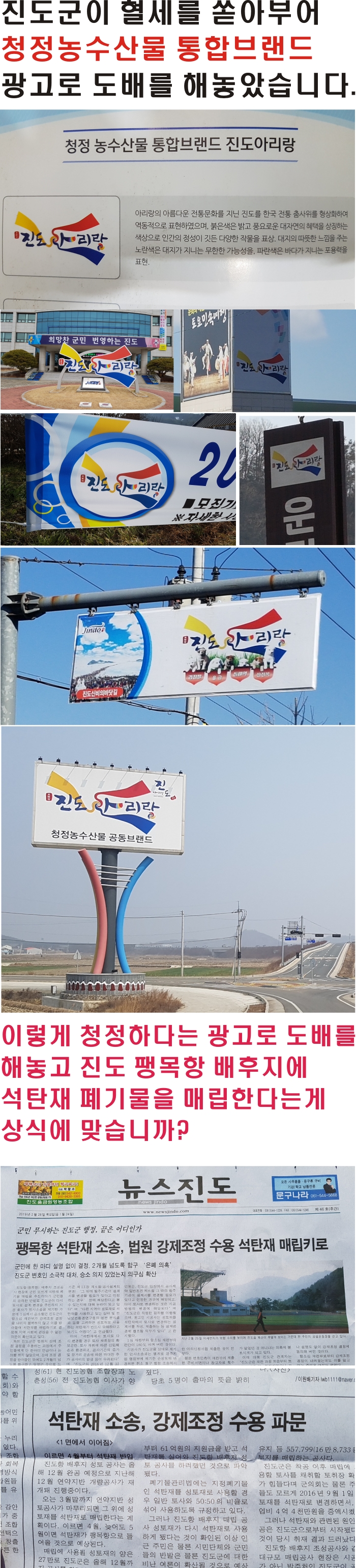 청정진도농수산물 홍보와 앞뒤 안맞는 진도항배후지 공사 석탄재 폐기물 매립