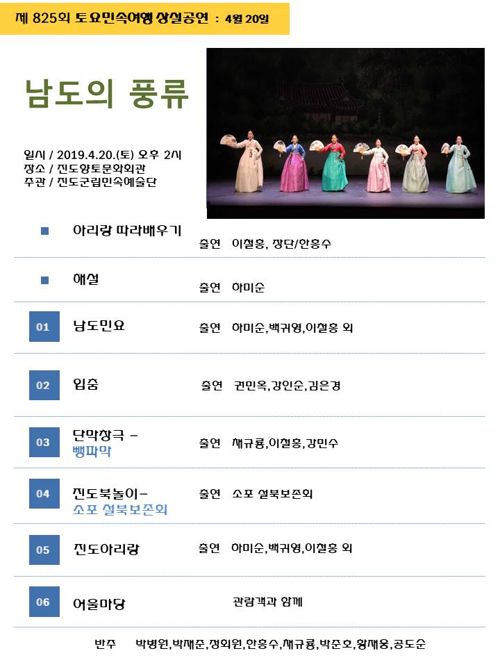 진도 토요민속여행 상설공연 (4월 20일) / 남도의 풍류