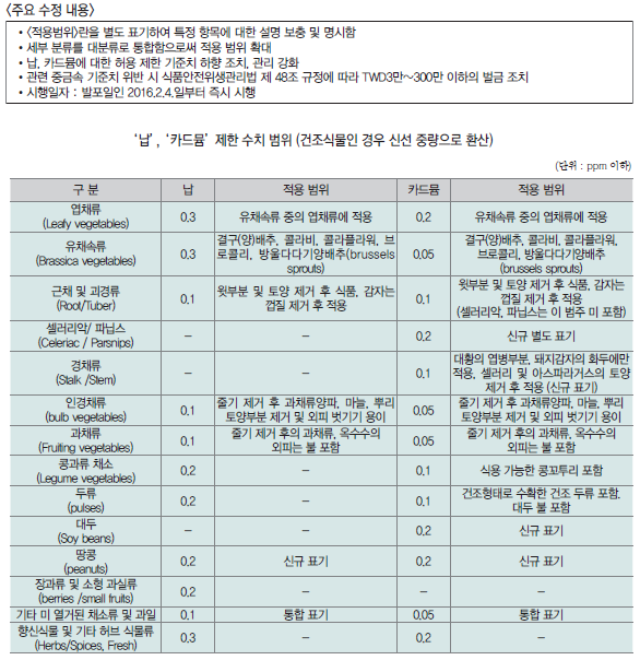 대만 위생복리부 식품약물관리서는 2월 4일 「과일·채소 식물류 중금속 제한 표준안(蔬果致物類重金屬限量標準)」