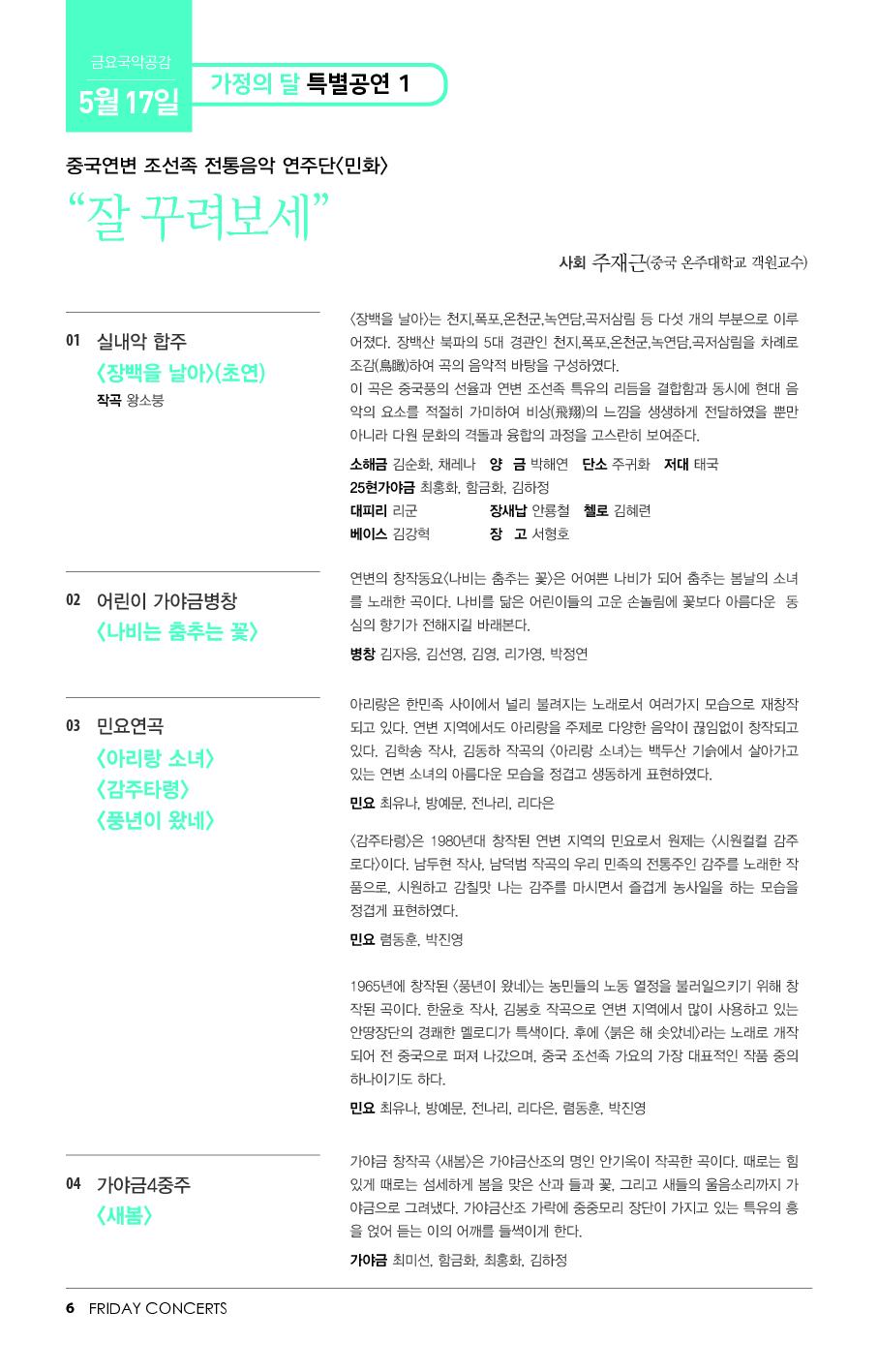 5월 17일 금요국악공감은 중국연변 조선족 전통음악 연주단 <민화>의 "잘 꾸려보세" 입니다.