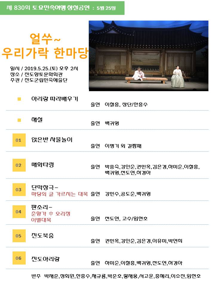 진도 토요민속여행 상설공연 (5월 25일) / 얼쑤~ 우리가락 한마당