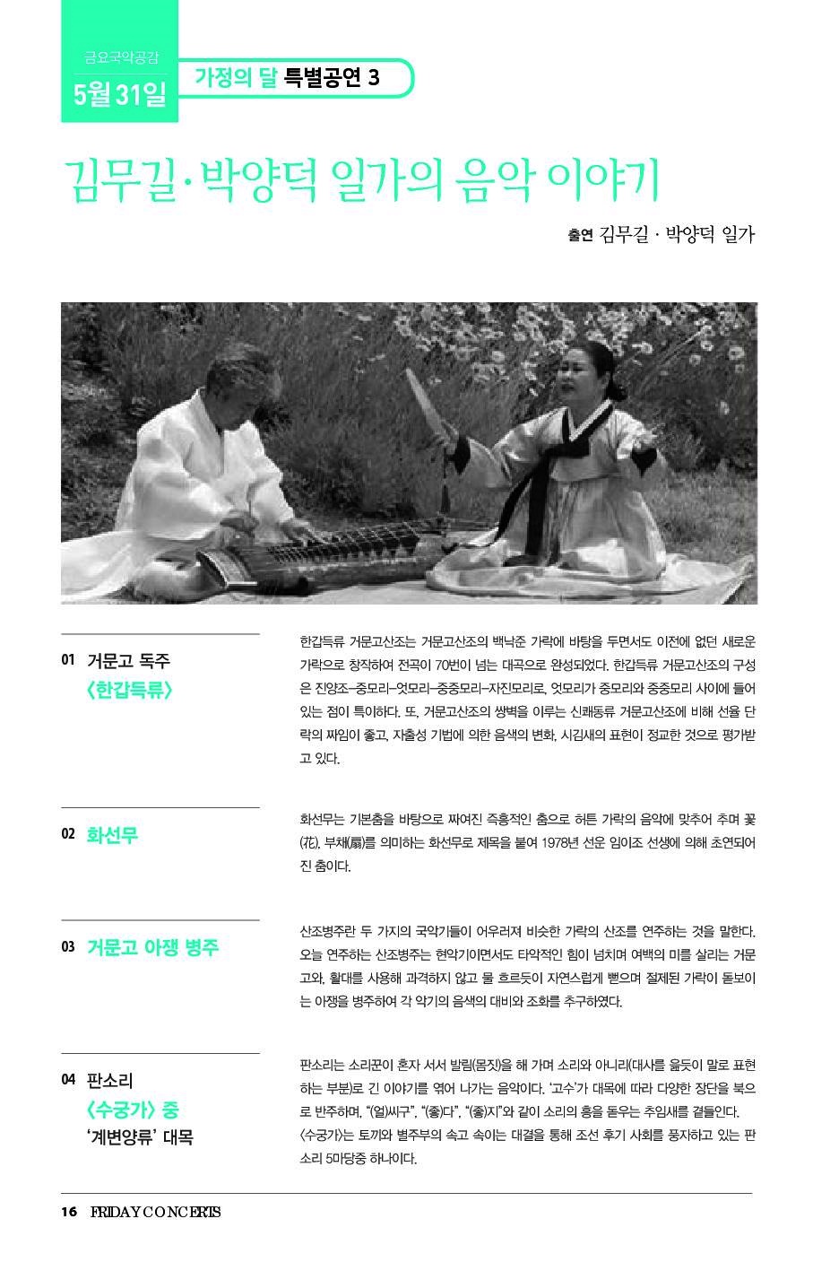 5월 31일 금요국악공감은 "김무길·박양덕 일가의 음악 이야기"입니다.