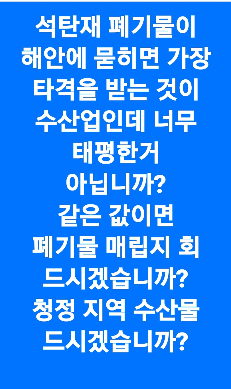 석탄재 폐기물 매립지 수산물 드시겠습니까? 아니면 반대 운동 하시겠습니까?