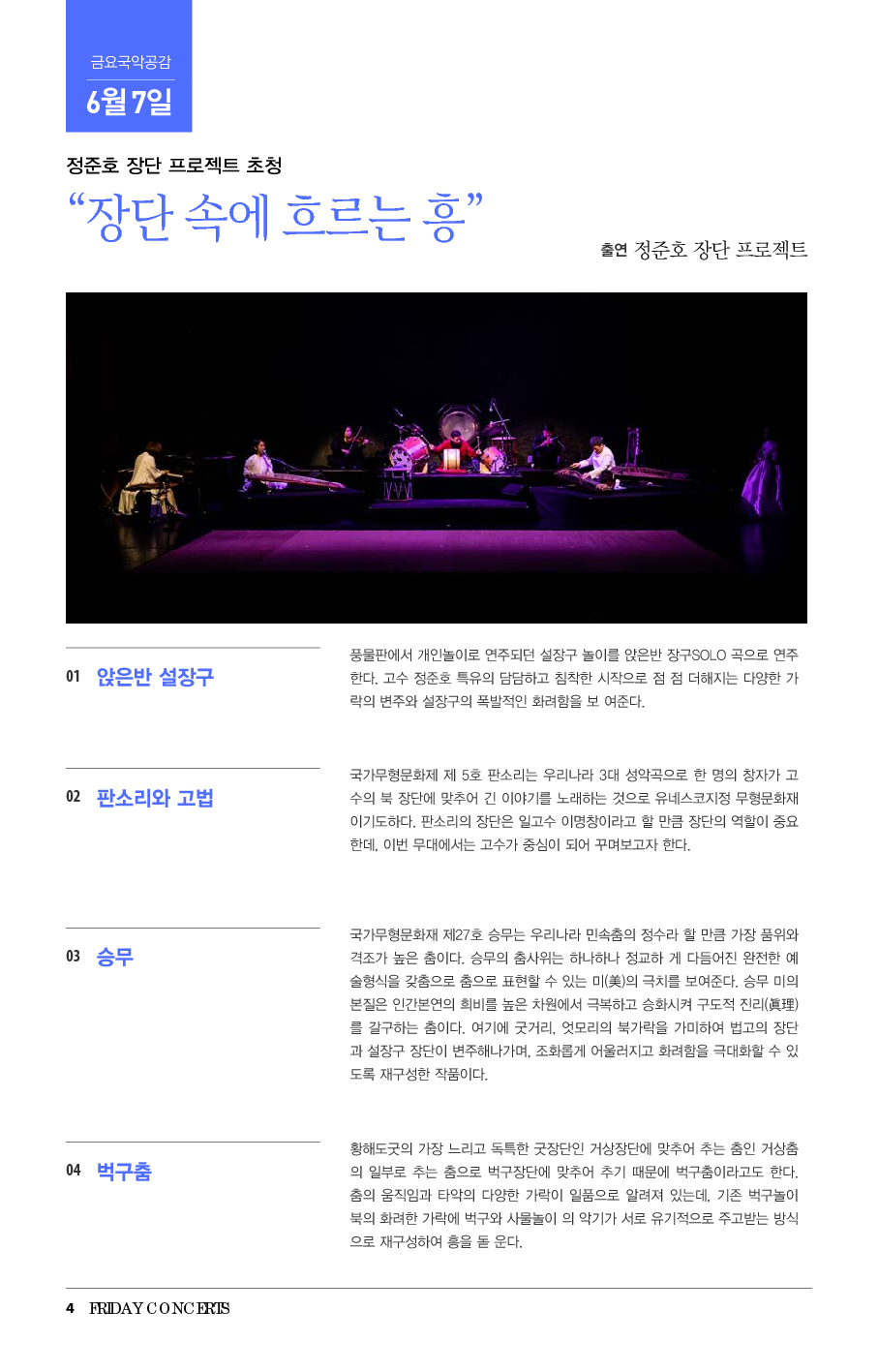 6월 7일 금요국악공감은 정준호 장단 프로젝트 초청 <장단 속에 흐르는 흥>입니다.