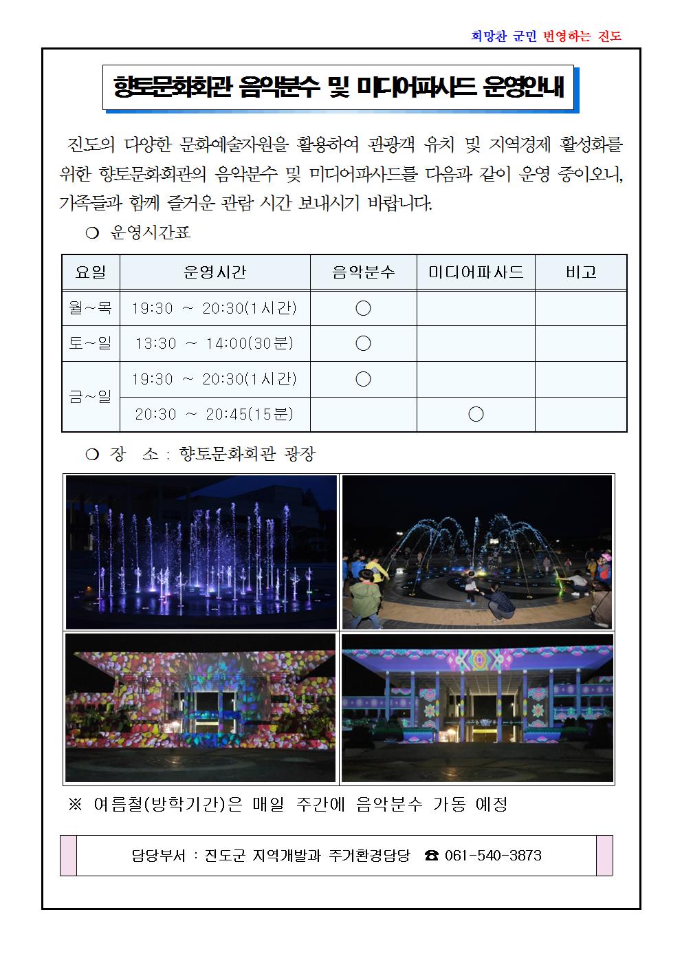 제목 향토문화회관 음악분수 및 미디어파사드 운영 안내