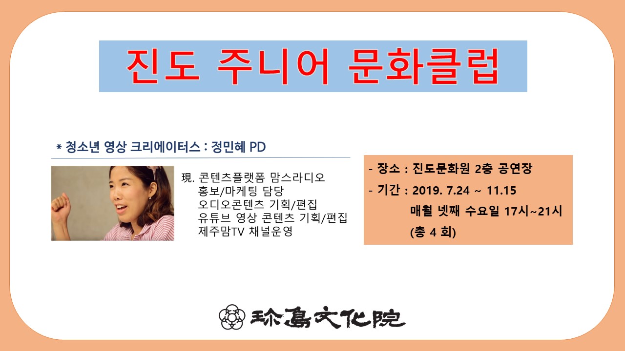 새로운 청소년 문화교육 플랫폼 「진도 주니어 문화클럽」의