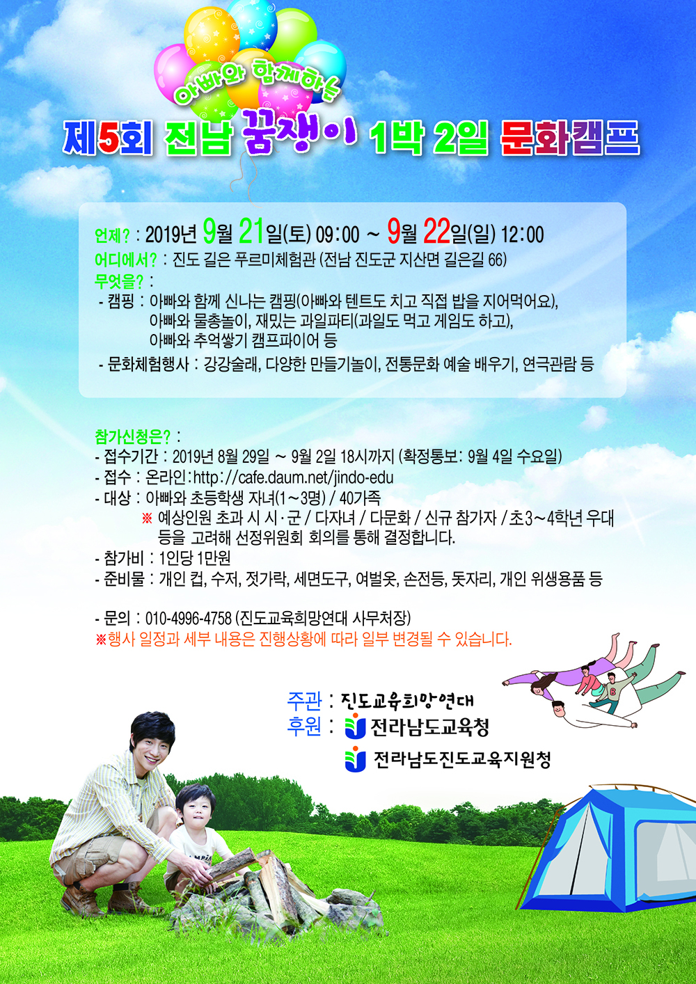 아빠와 아이가 함께하는 1박2일 캠핑에 참여해 보세요.