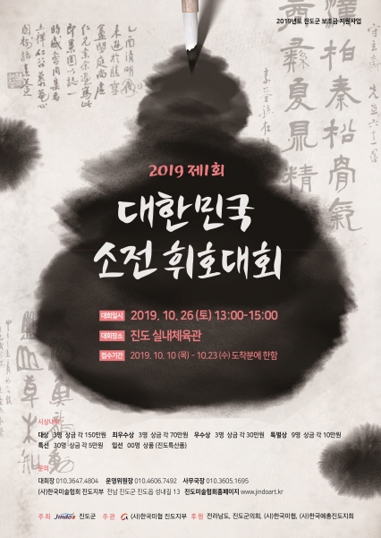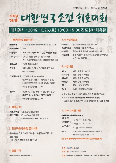 제1회 소전휘호대회 개최요강, 출품원서등 관련 서류는 한국미술협회진도지부 홈페이지