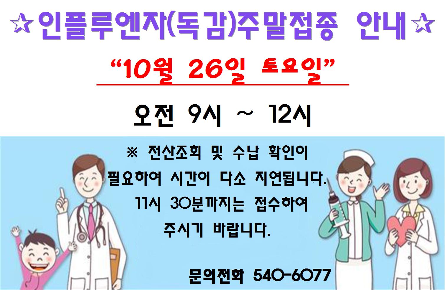 진도군 보건소 인플루엔자(독감)주말접종 안내