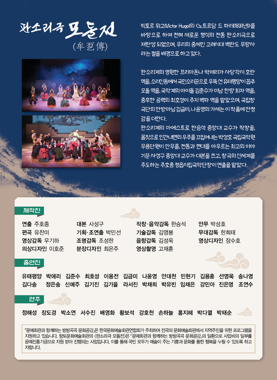 공연내용 : 빅토르 위고의 작품 <노트르담 드 파리>를 새로운 형식의 전통 판소리극으로 재탄생시킨 작품으로