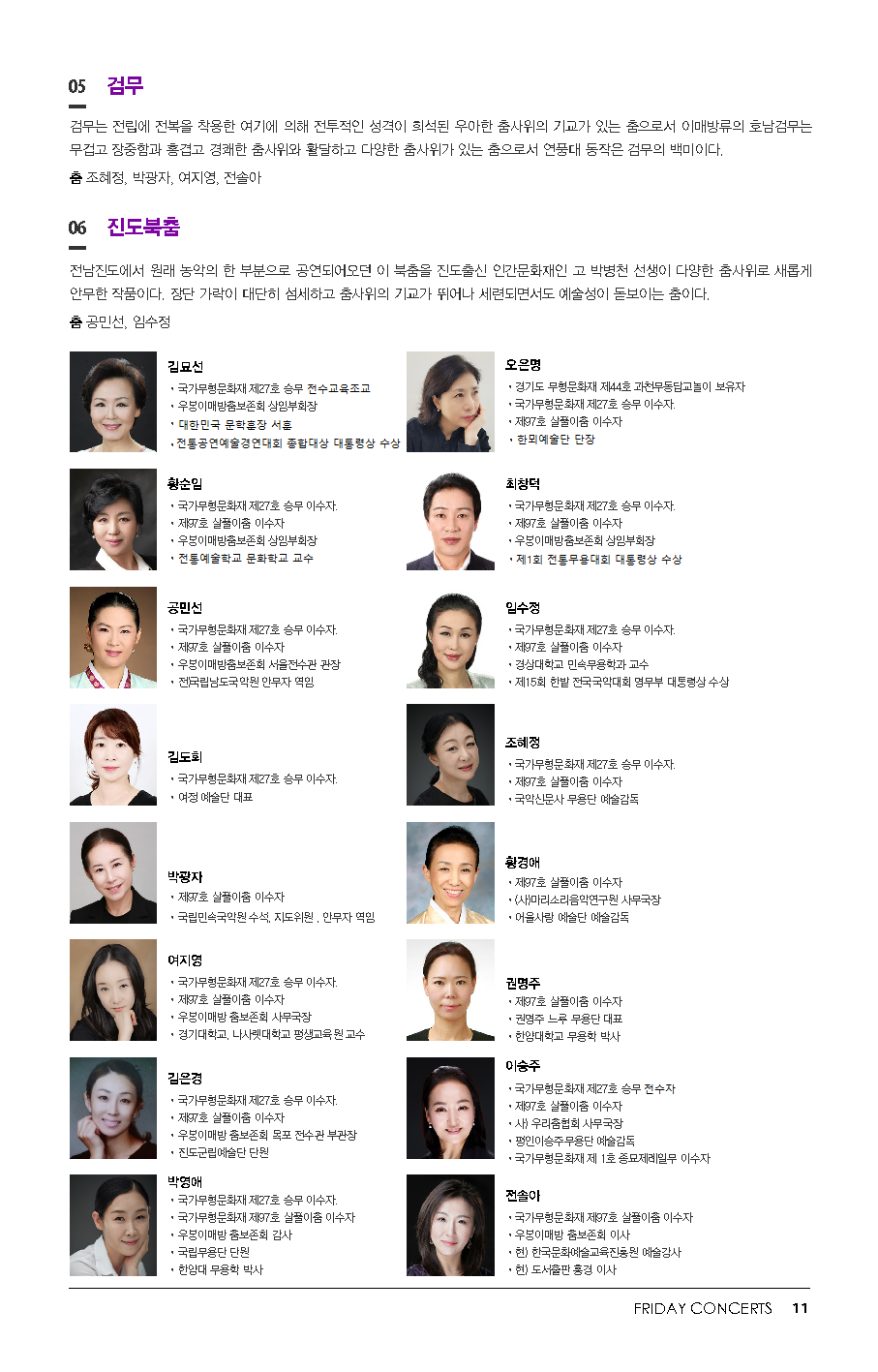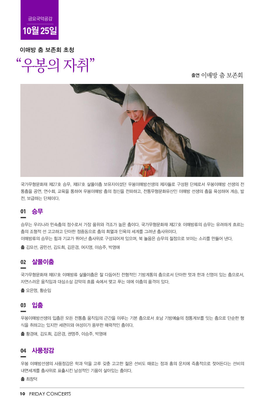10월 25일 금요국악공감은 우봉 이매방 선생의 춤을 육성하여 계승, 발전, 보급하는