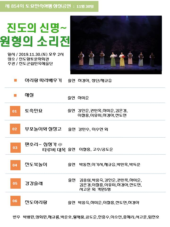 진도 토요민속여행 상설공연 11월 30일 / 진도의 신명~원형의 소리전