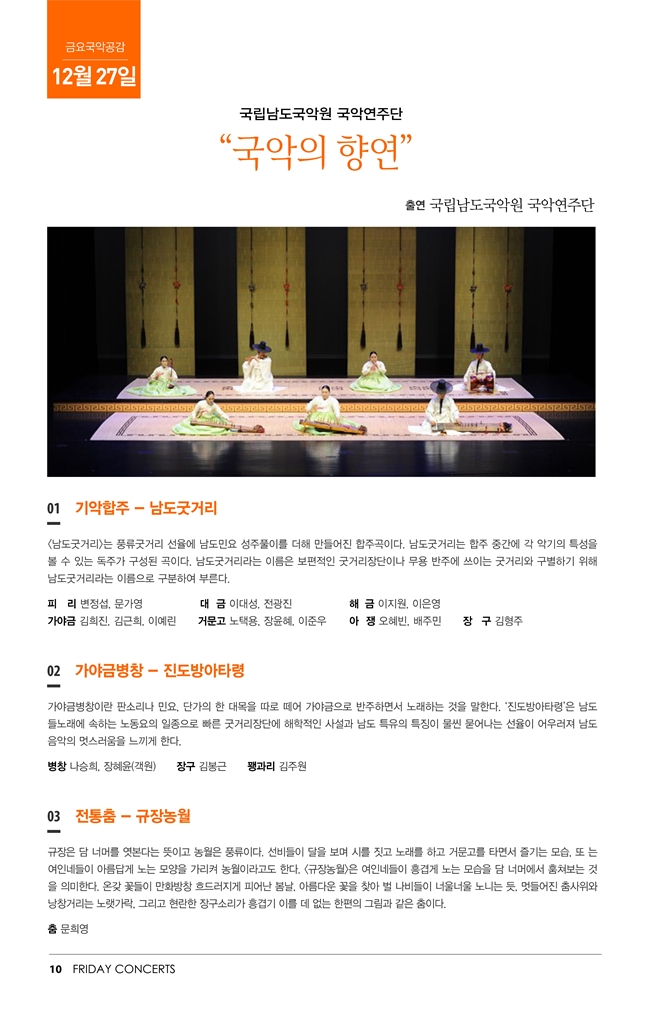 12월 27일 2019년 마지막 금요국악공감은 국립남도국악원 국악연주단의 "국악의 향연" 입니다.
