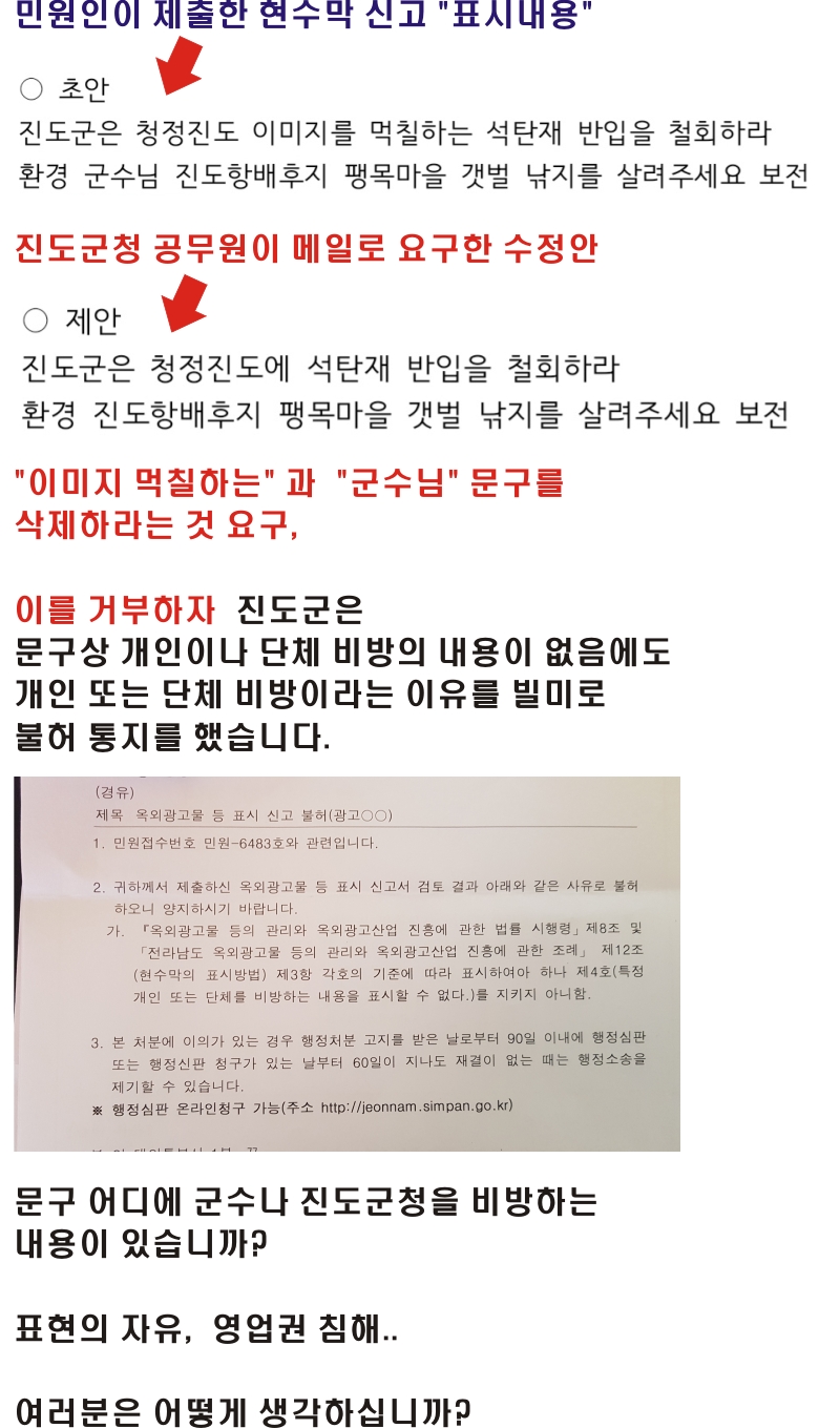 "군수님 진도항 배후지 팽목마을 갯벌 낙지를 살려 주세요. "