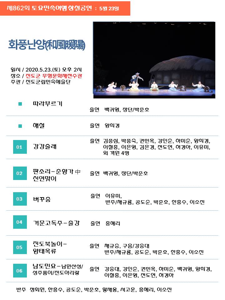 진도 토요민속여행 상설공연(5월 23일) / "화풍난양(和風暖陽)"
