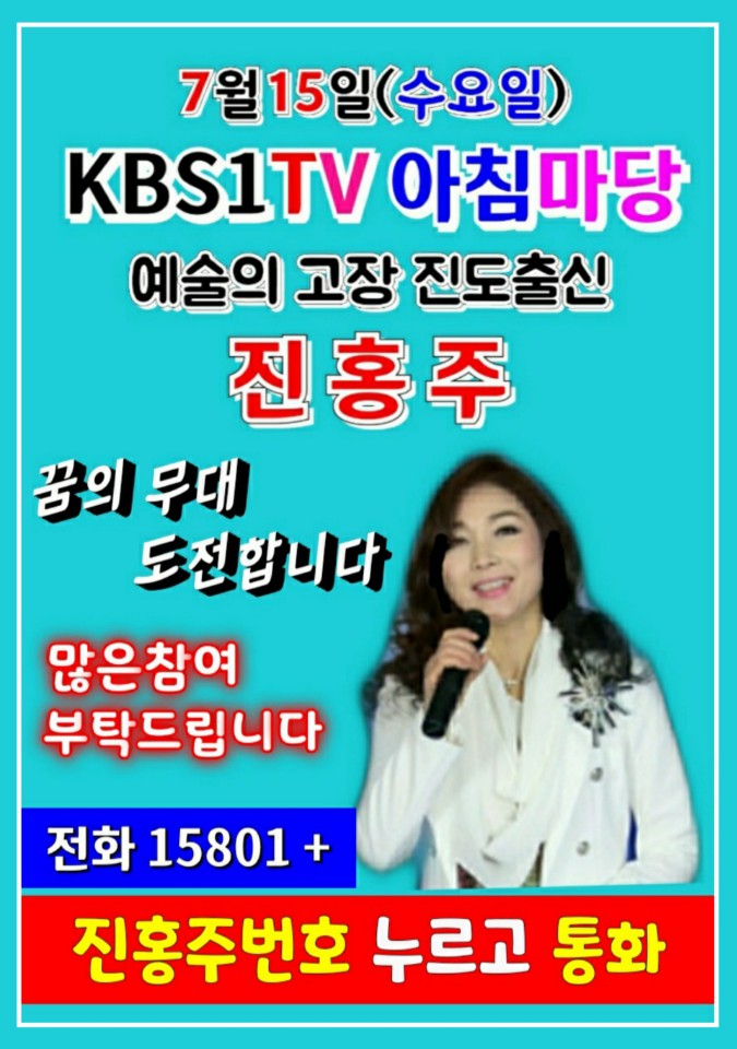 진도출신 가수 진홍주 7월 15일(수) KBS1 아침마당 출연!!!!!!!!