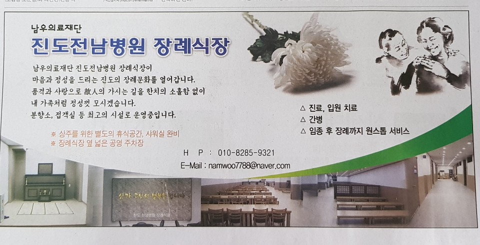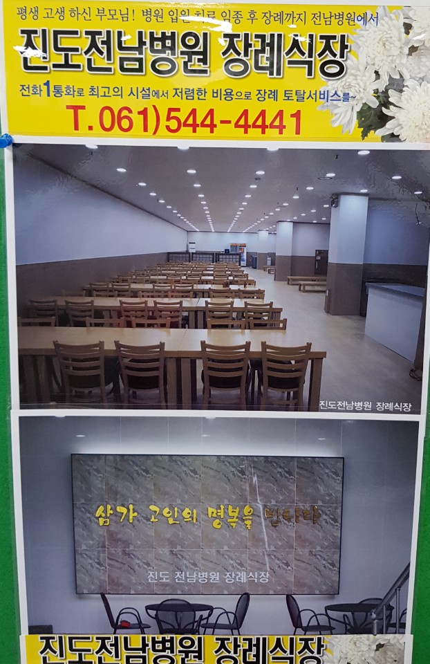 남우 의료재단 전남병원 장례식장 입니다 항상 죄상의 장례문화로 고객을 모실것을 약속드립니다 전화 한통화로 진료 입원 간병 모두다 해드립니다 최저 비용과 고객맞춤을 선보입니다 061 544 4441 꼭 기억하세요 전남병원 장례식장