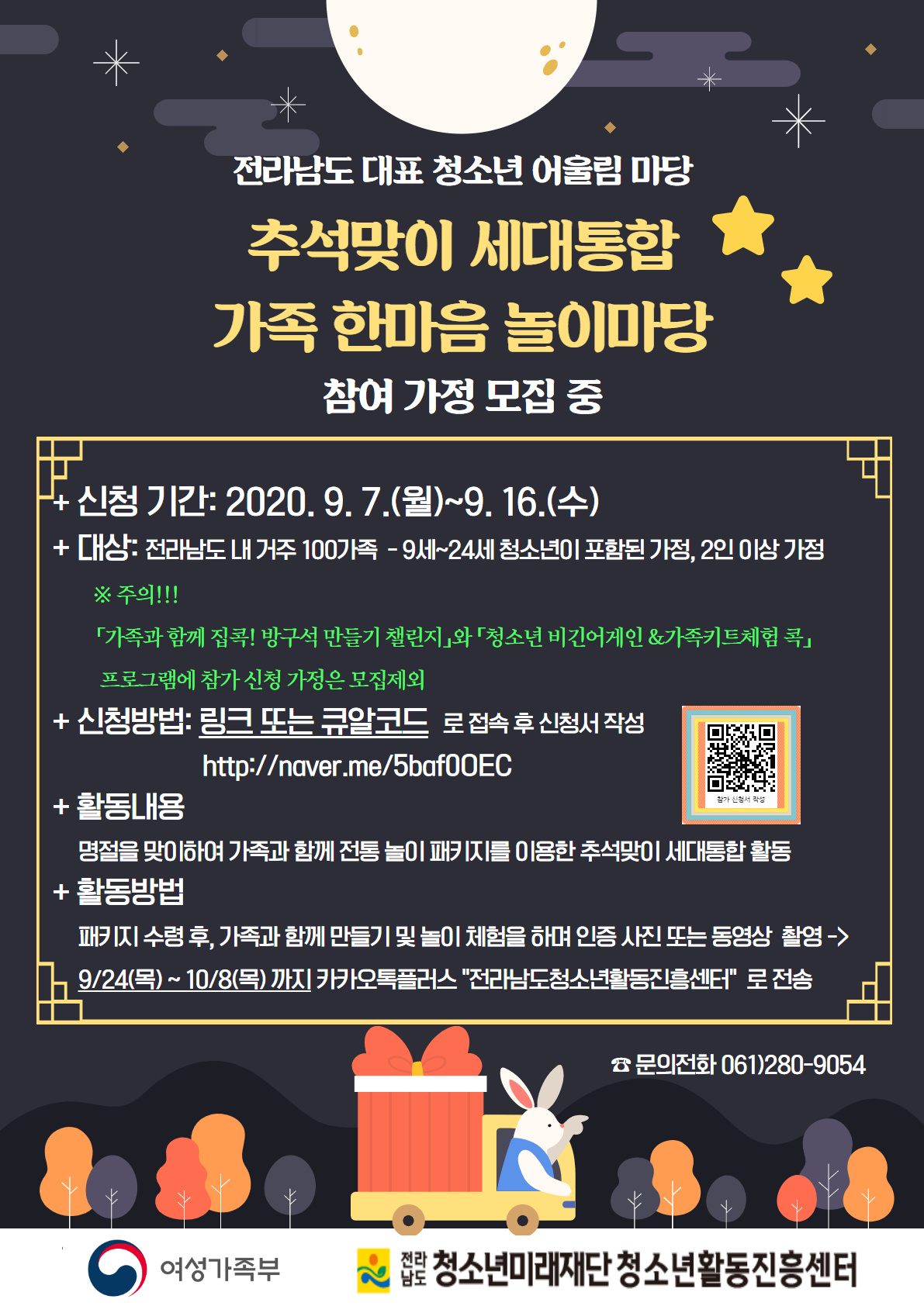 ♡추석맞이 세대통합 가족 한마음 놀이마당 참가자 모집