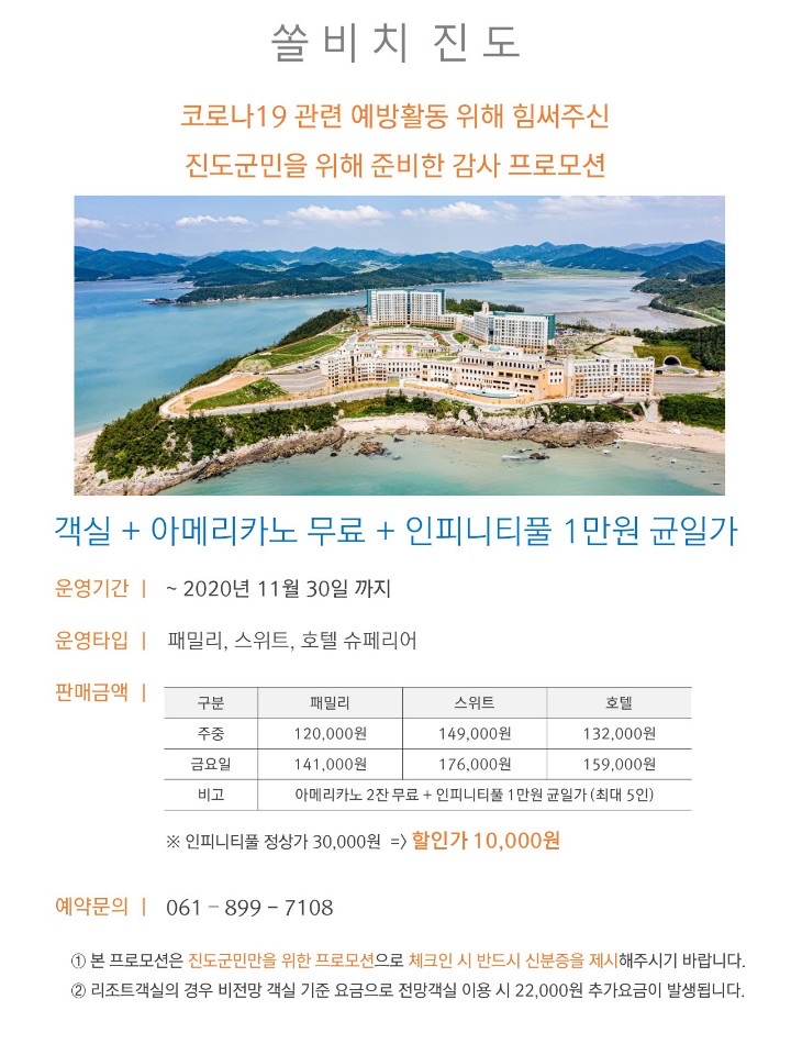 진도군민을 위해 준비한 쏠비치 진도 감사 프로모션 안내