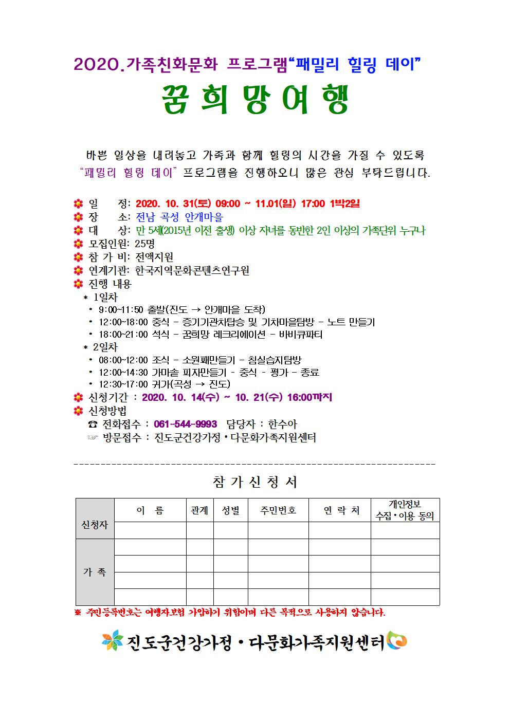 패밀리 힐링 데이-"꿈희망여행" 진행 일정 변경 안내 및 참가가족 모집(선착순)