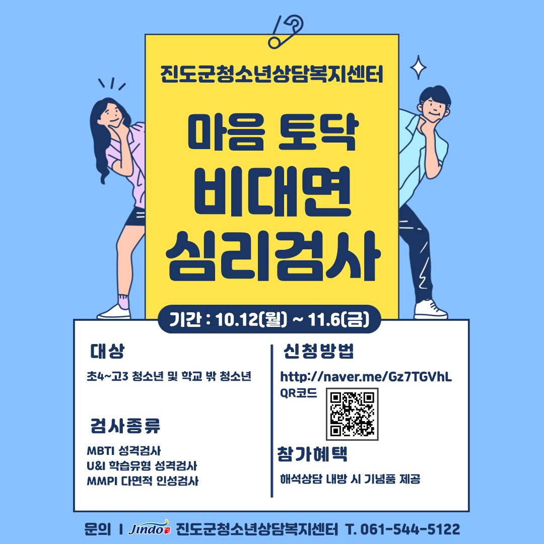 2020 진도군청소년상담복지센터 마음토닥 "비대면 심리검사" 실시(무료)