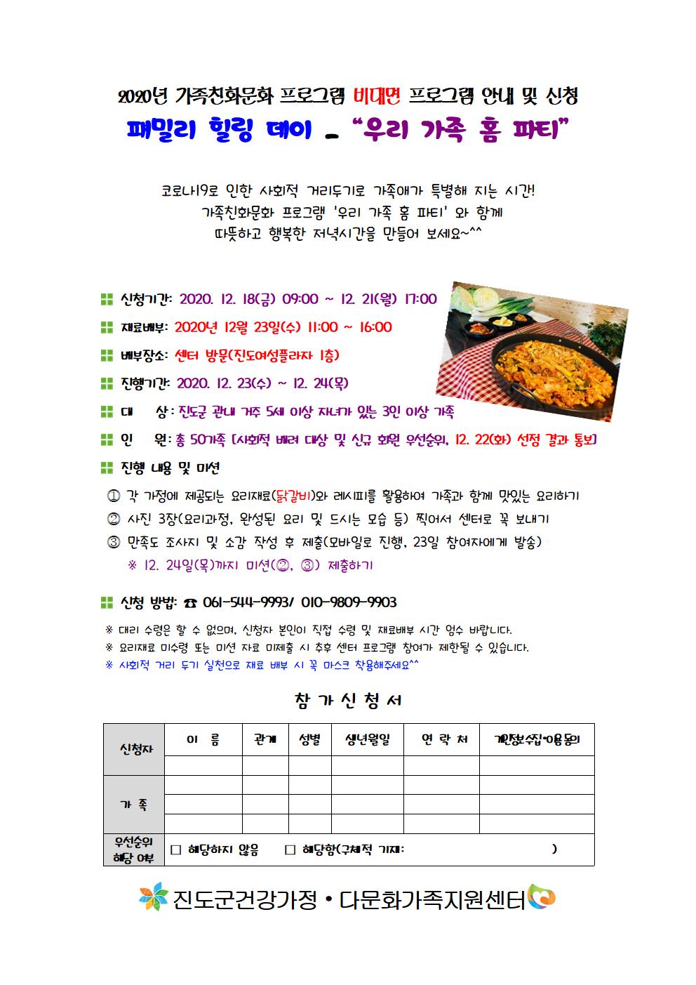 가족친화문화 프로그램 비대면 (패밀리 힐링 데이-우리 가족 홈 파티) 프로그램 참가자 모집