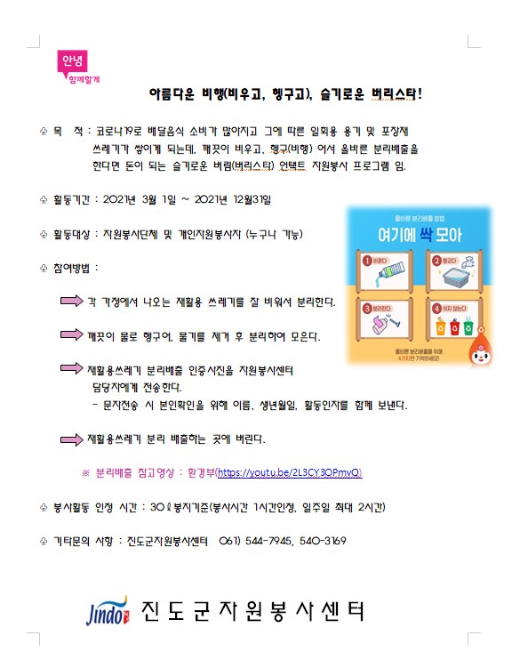 언택트 자원봉사활동에 많은 참여 부탁드립니다. - 진도군자원봉사센터