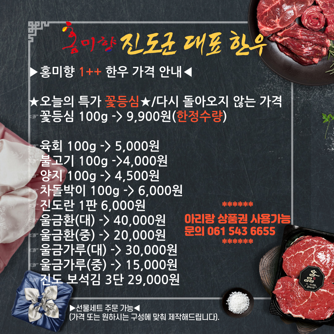 오늘은 꽃등심 특가입니다. 정말 맛있고 좋은 부위 합리적인 가격으로 준비했습니다 많은 방문 부탁드립니다 ^0^