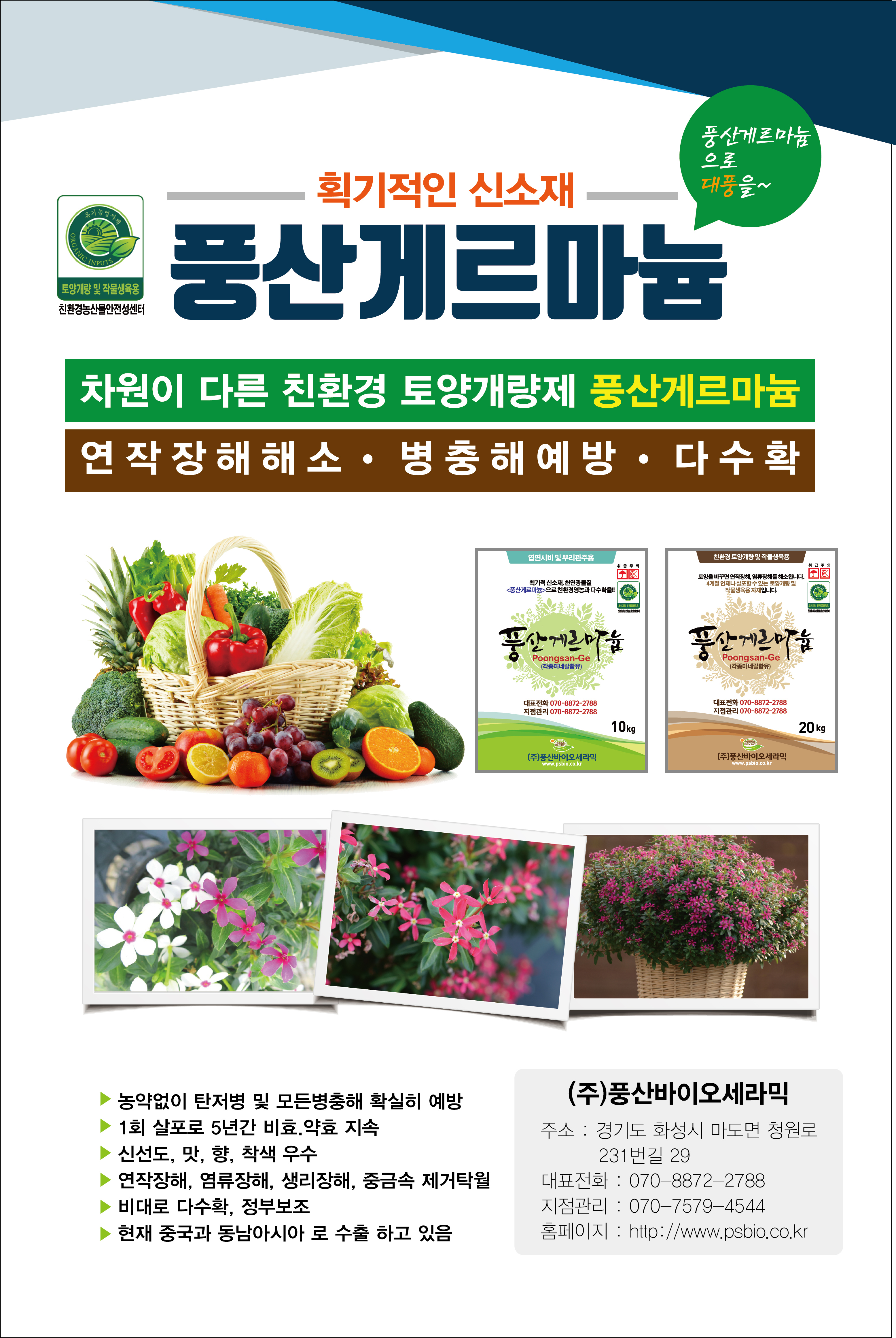 최고2.5배로 생산량이 다수확 되는 친환경 유기농 토양개량 및 작물생육촉진제 풍산게르마늄을 안내하오니