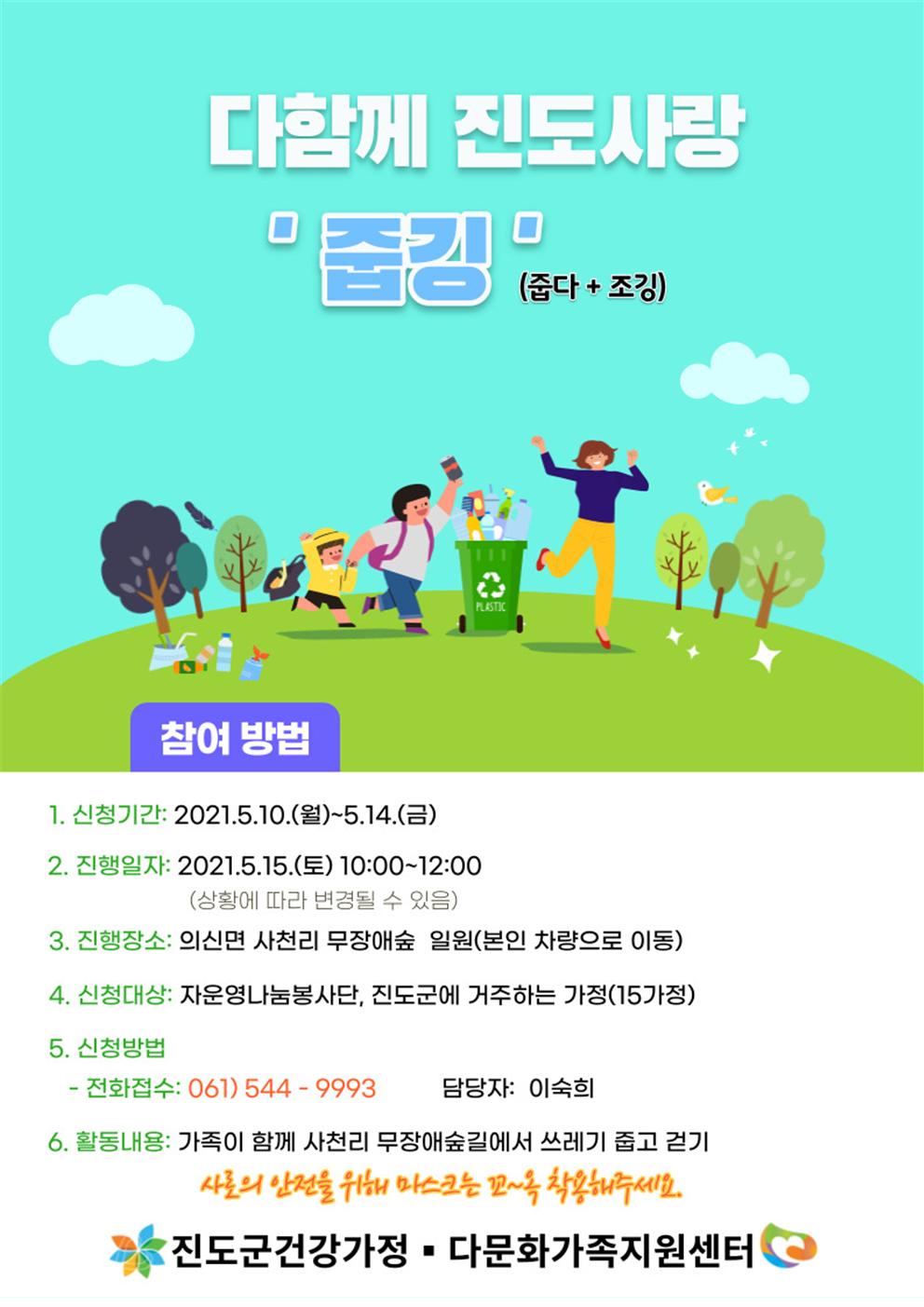 자운영나눔봉사단 5월 프로그램(다함께 진도사랑 '줍깅') 참여자 모집