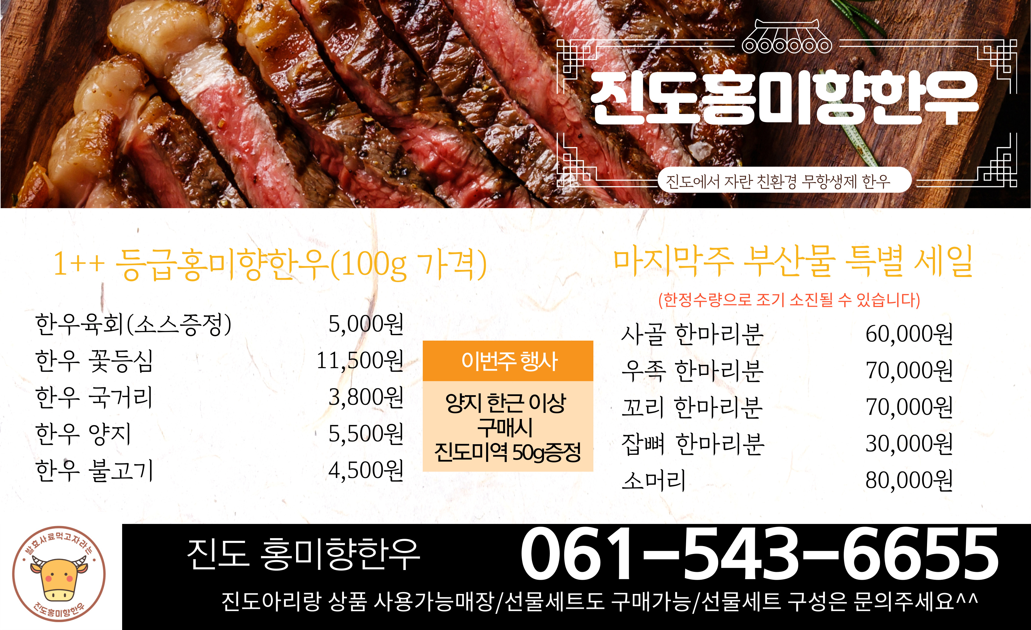 ★1++등급 홍미향한우 마지막주 부산물 특별세일★