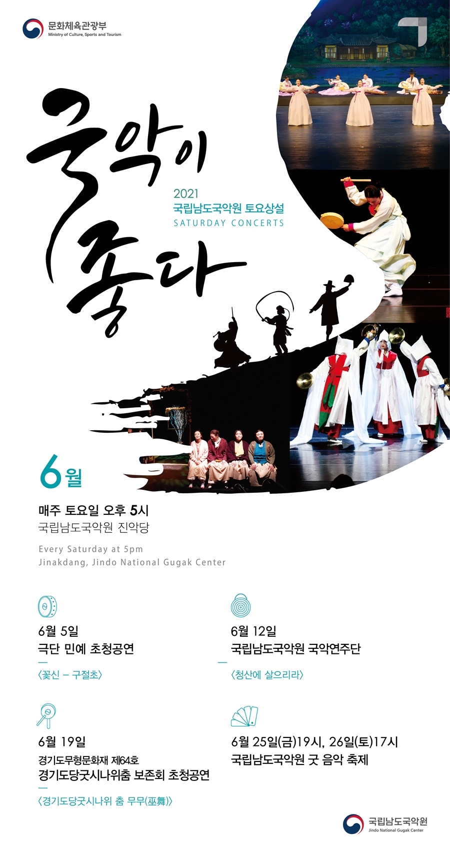 < 토요상설 ‘국악이 좋다!’ 6월 공연 및 굿음악축제 안내 >