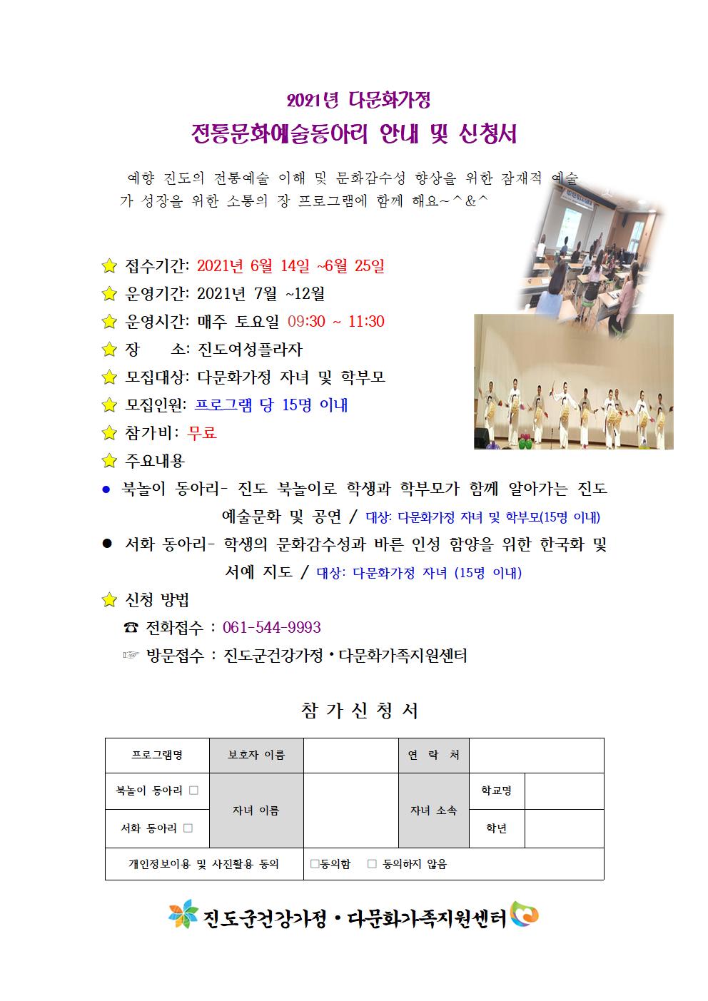 2021년 다문화가정 전통문화예술동아리(북놀이 동아리 & 서화 동아리)