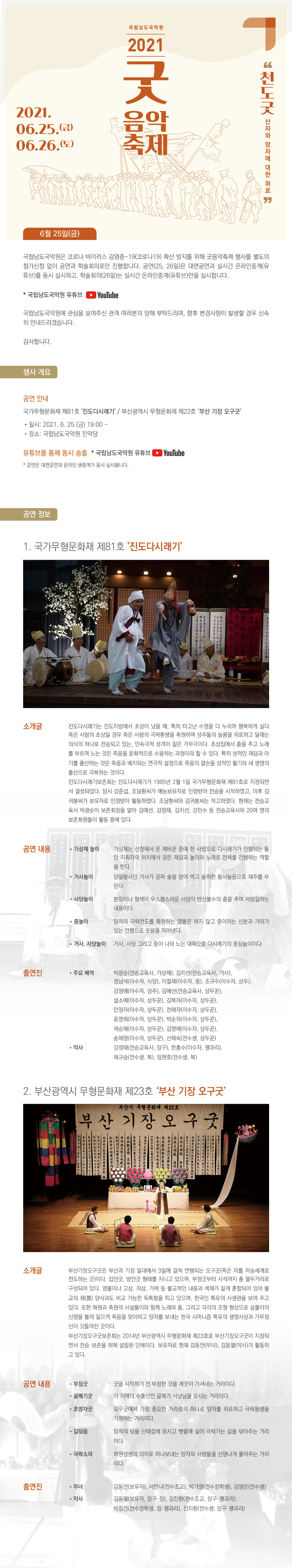 ㅇ ’21.6.25.(금) 19:00 진도다시래기, 부산 기장 오구굿