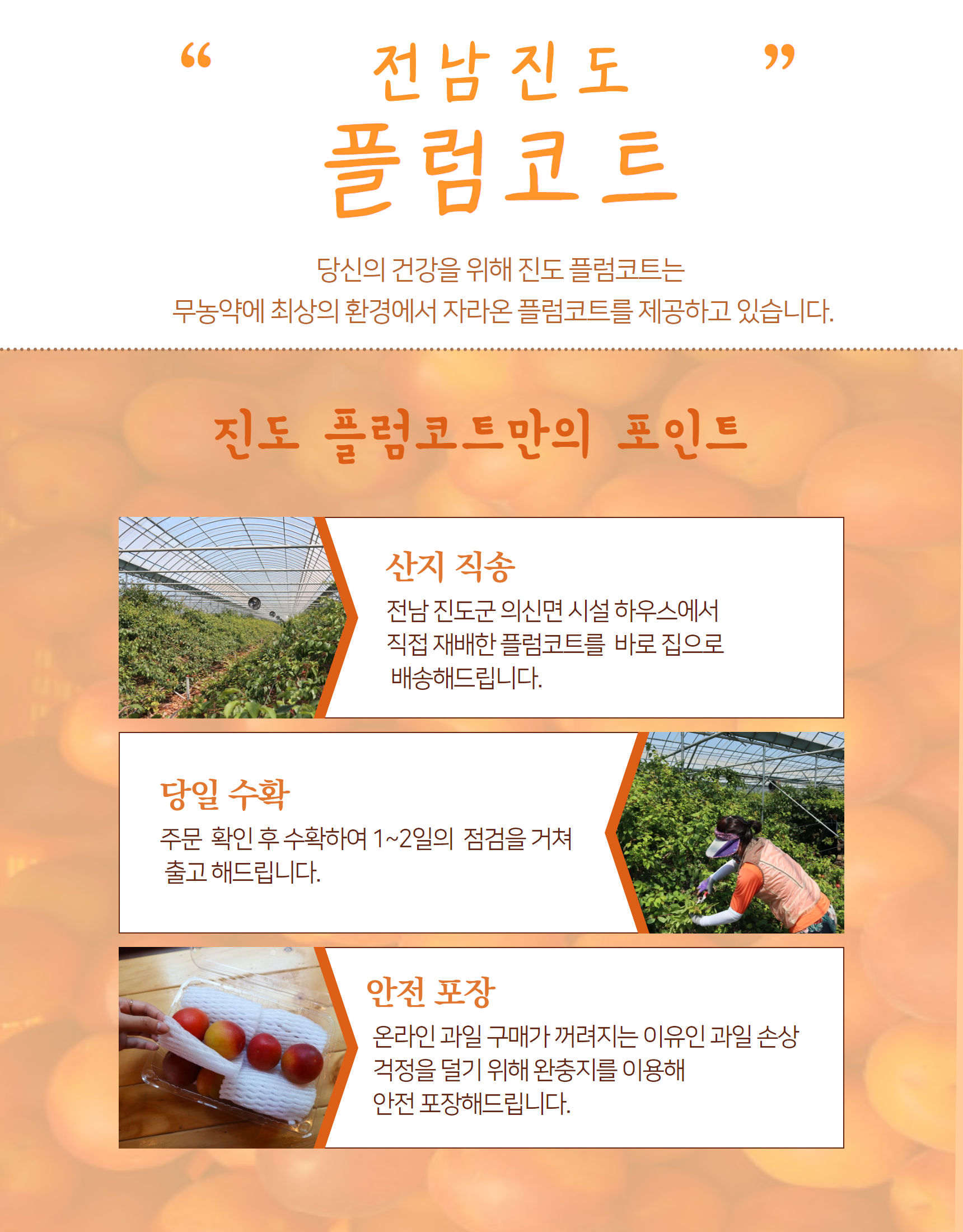 저희 진도 플럼코트는 '전남 진도군 의신면 응덕'이라는 공기 좋은 마을에서