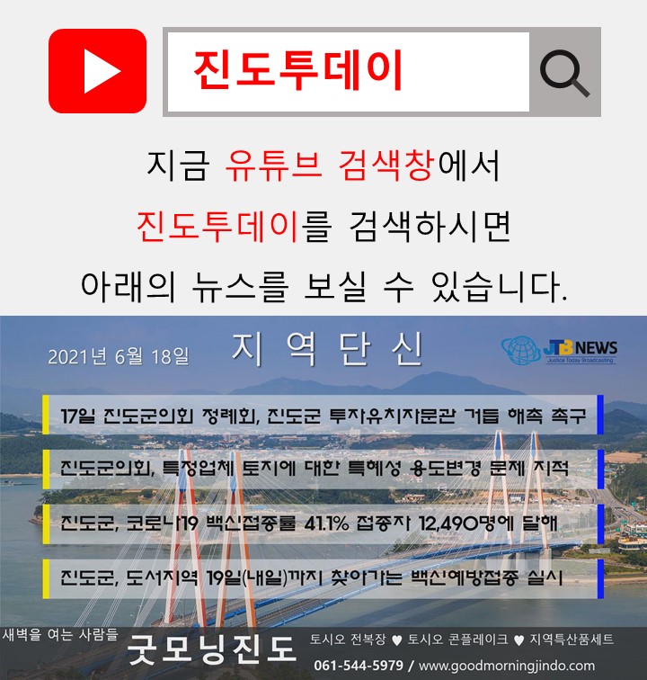 ☞뉴스 영상은 JTB NEWS 홈페이지(www.jindotoday.com) 유튜브를 통해서 확인가능합니다.