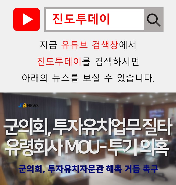 ☞뉴스 영상은 JTB NEWS 홈페이지(www.jindotoday.com) 유튜브를 통해서 확인가능합니다.