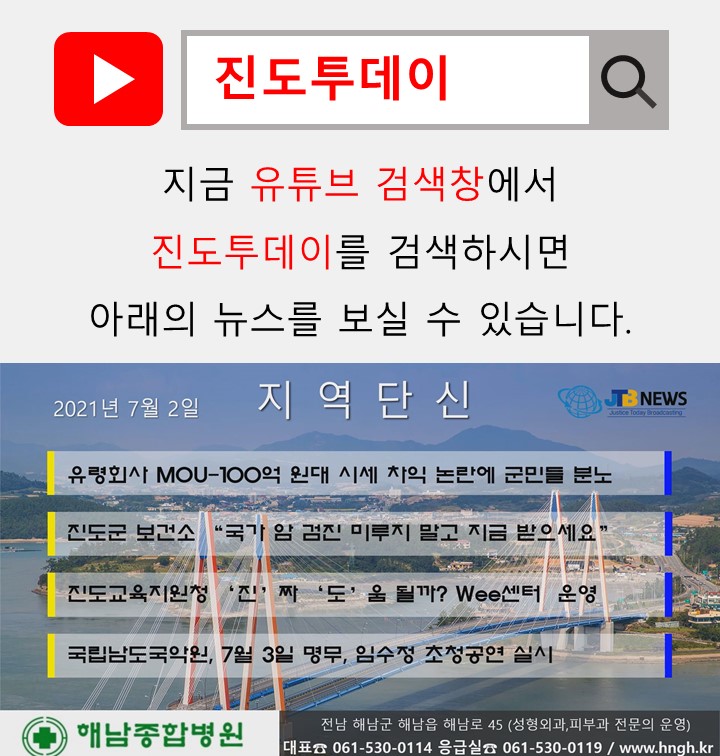 [JTB NEWS/진도투데이] 7월 2일 지역단신