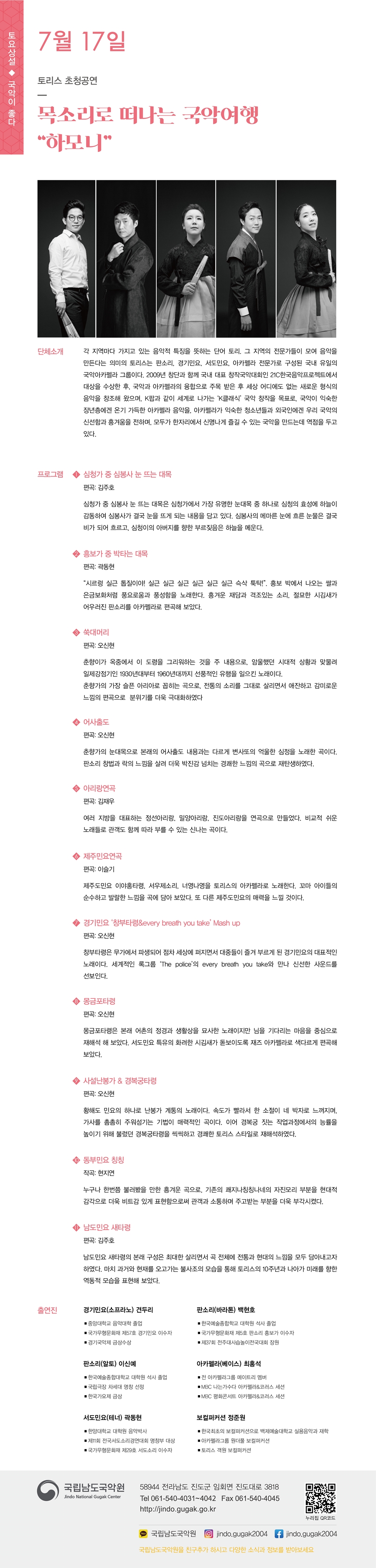 토리스 초청공연 “목소리로 떠나는 국악여행 ‘하모니’”