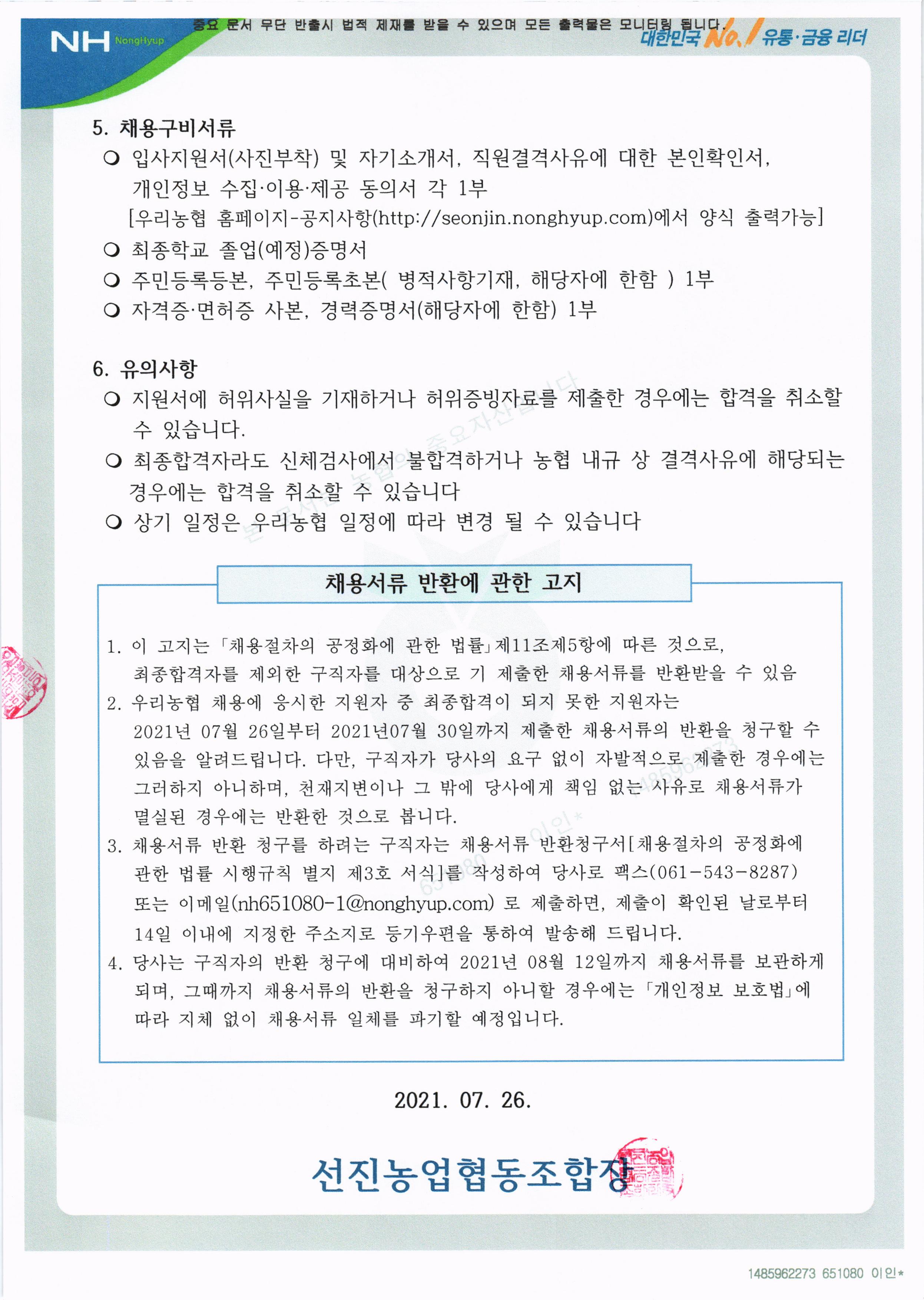 자세한 공고내용과 입사지원서 양식은 선진농협 홈페이지 공지사항에 게시되어있습니다. 많은 지원 바랍니다.