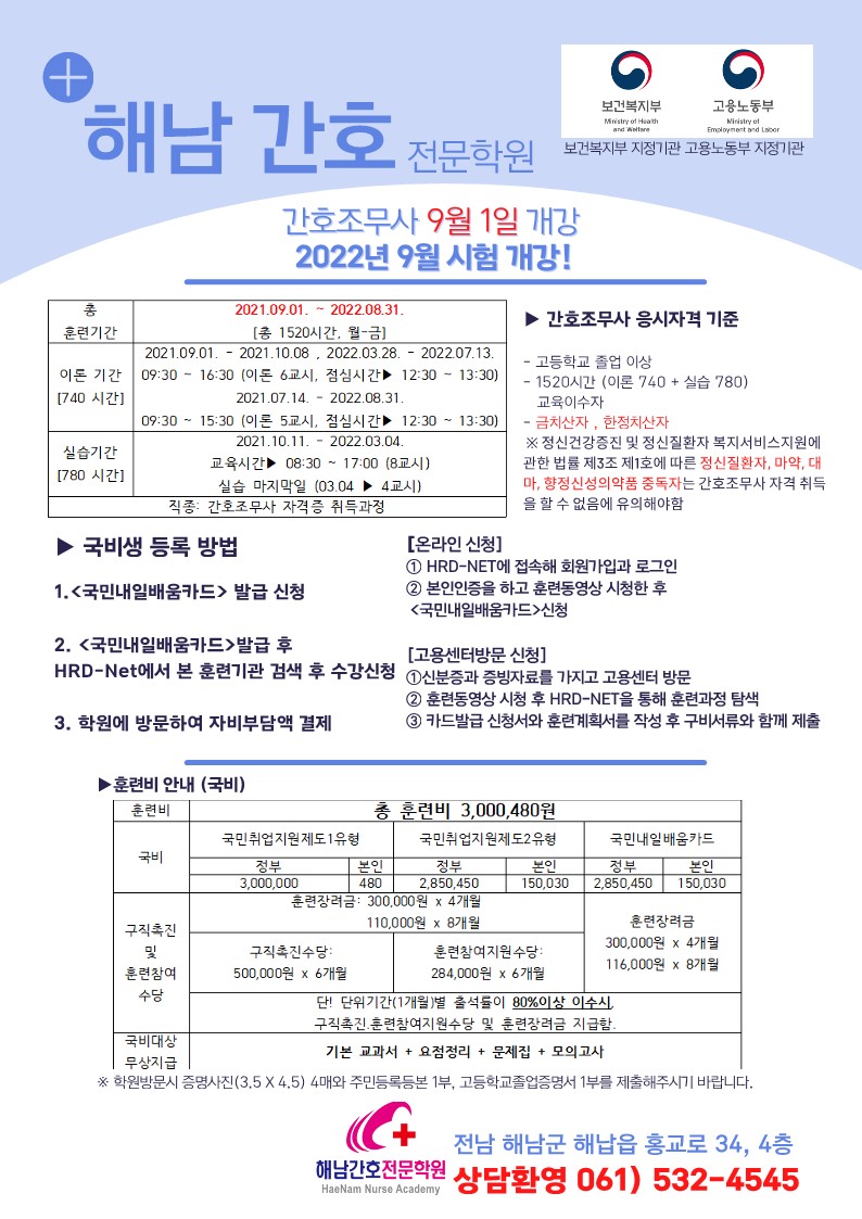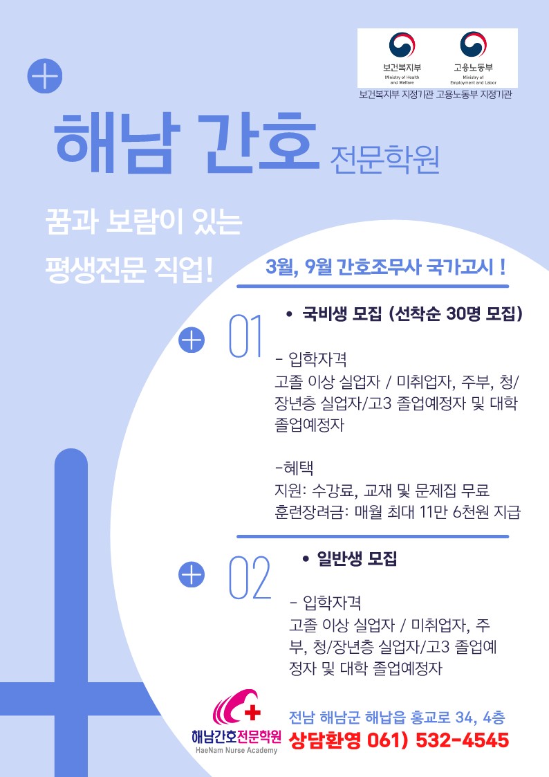 [ 해남간호전문학원] 간호조무사 군비모집 합니다.