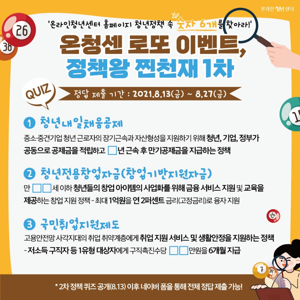 (온라인청년센터) 로또 이벤트, 정책왕 찐천재 (1차퀴즈 공개)