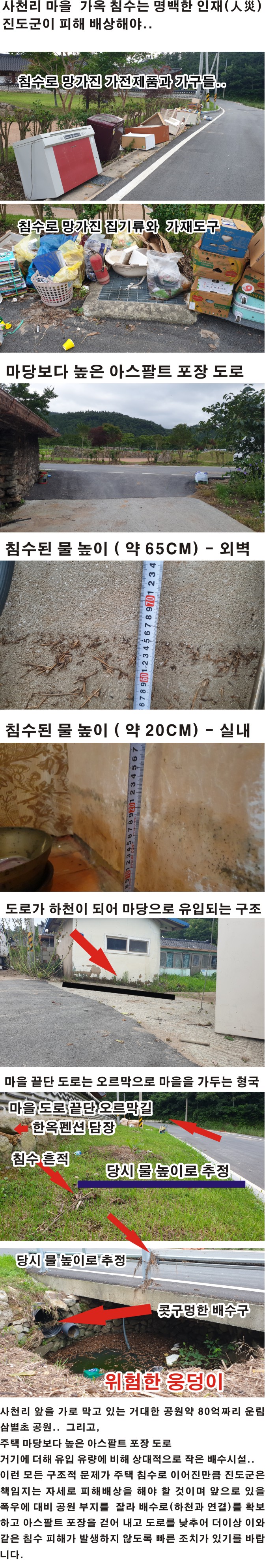 사천리 마을 가옥 침수는 인재 - 진도군이 책임지고 손해배상해야
