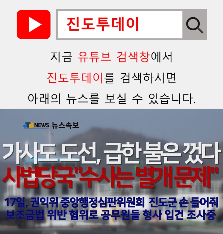 ☞뉴스 영상은 JTB NEWS 홈페이지(www.jindotoday.com) 유튜브를 통해서 확인가능합니다.
