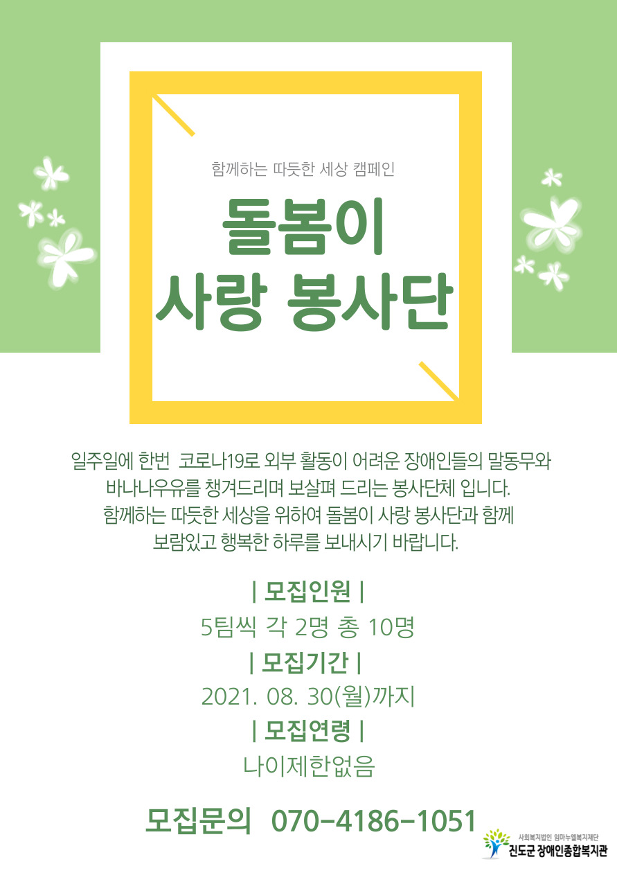 [진도군장애인종합복지관]돌봄이 사랑봉사단 모집